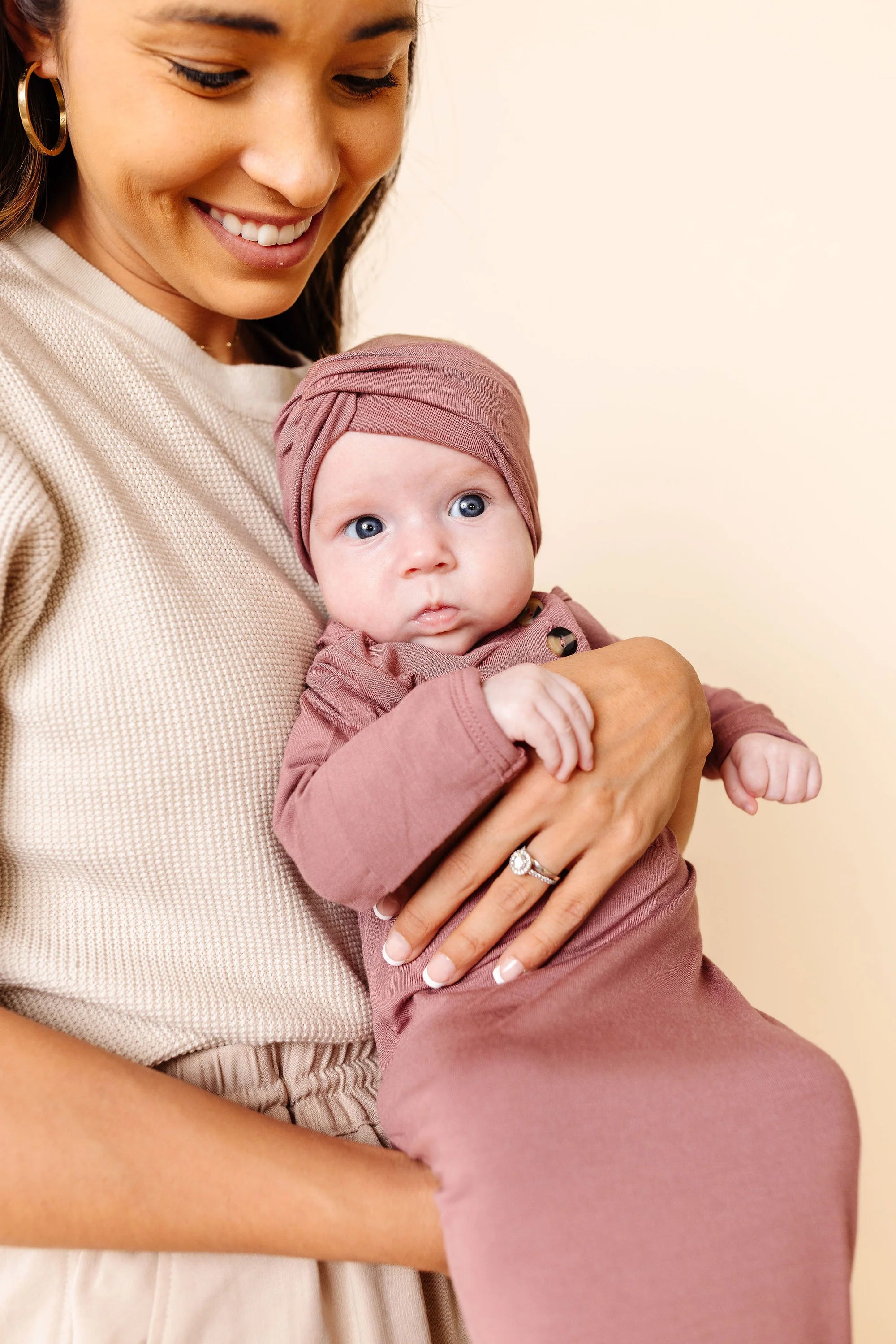 The easiest tie-bottom outfit for day or night. Made for hassle free diaper changes and gentle dressing, with a button-down front and tie bottom for simple closure (no more snaps...