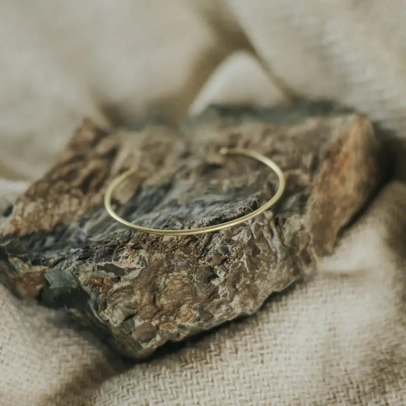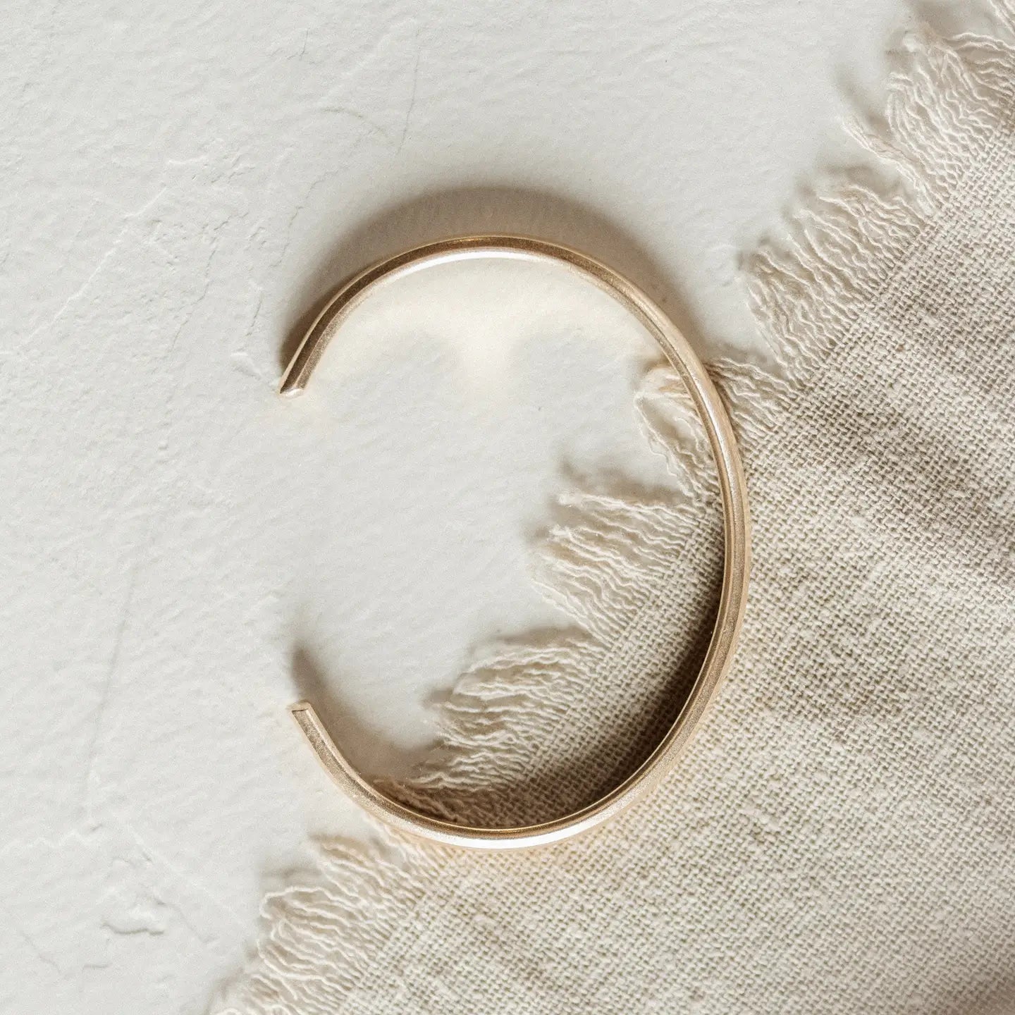 Hand forged to mirror the gentle curve of ocean waves, this minimalist cuff adds an artistic touch to any stack. 14g wire is hand shaped and hammered. One size fits...