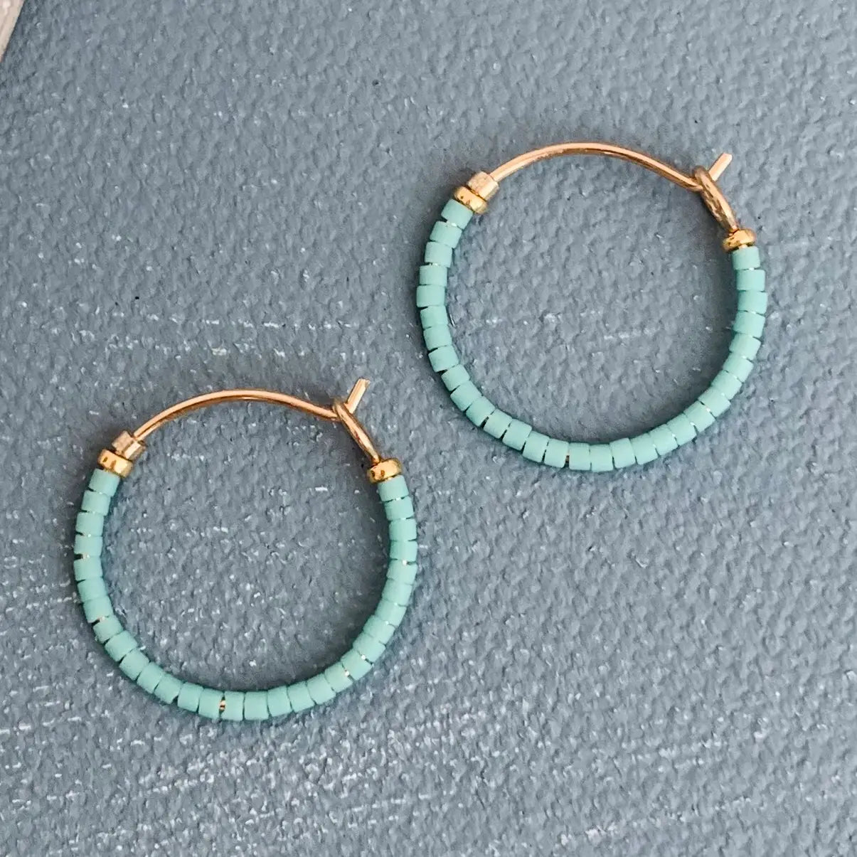 Lightweight Japanese glass beads adorn a handmade, 14k gold filled hoop.