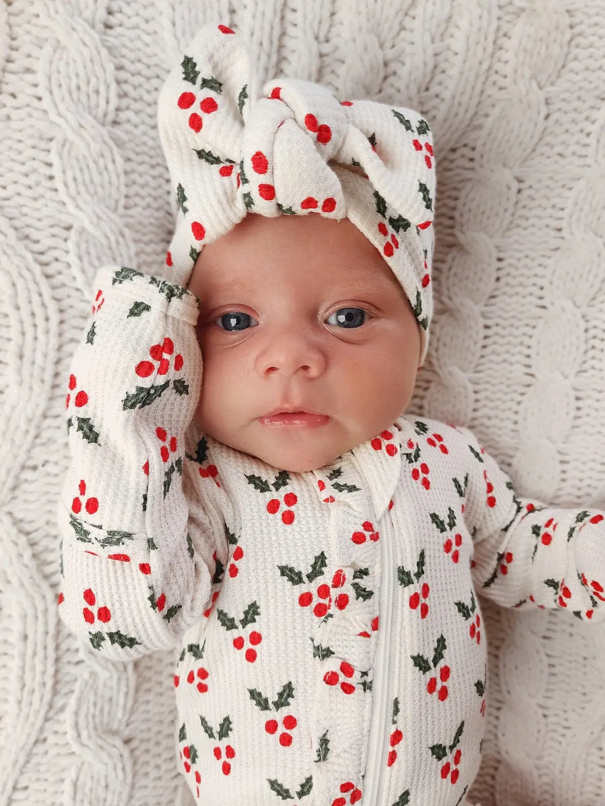 Have a holly jolly Christmas with this sweet holly print footie! Bringing a touch of tradition and festive cheer to every little one's celebration this festive holiday season!