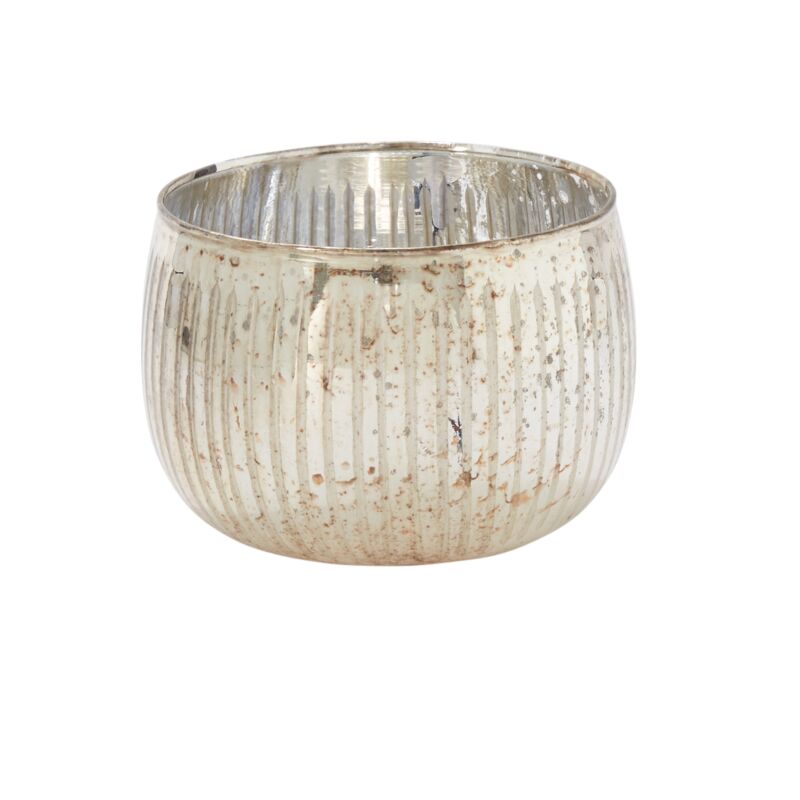 A trendy metallic color, soft, aged finish, & warm glow make the glass Phillipa Votive a stunning vessel to accent any surface. Etched vertical stripes add interest, while the versatile...