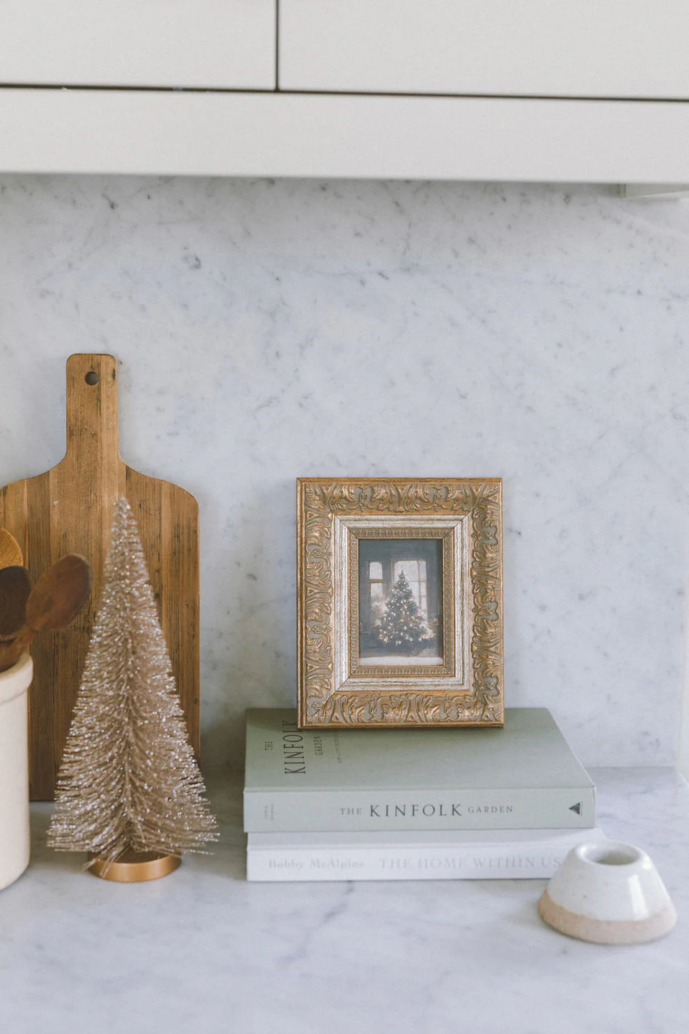 This vintage holiday artwork is printed on raw canvas and placed in an antique inspired frame for an authentic, timeless look.