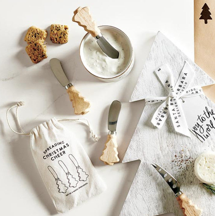 Spreading Christmas Cheer... these spreaders are the perfect gift for a Holiday Hostess! These tree handled charcuterie spreaders come in a stylish muslin bag for easy storage Material: Stainless Steel,...