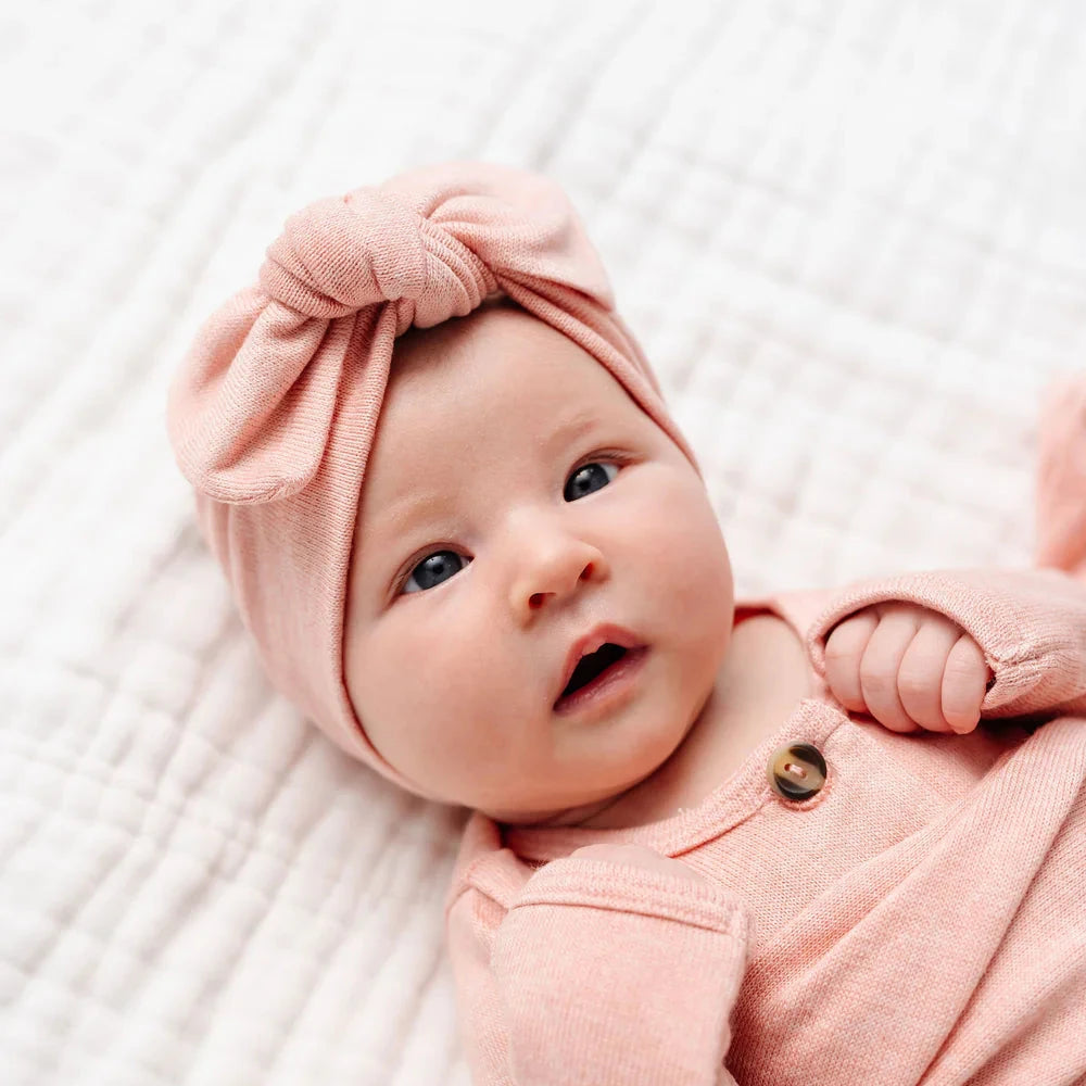 The easiest tie-bottom outfit for day or night. Made for hassle free diaper changes and gentle dressing, I designed this with a button-down front and tie bottom for simple closure...