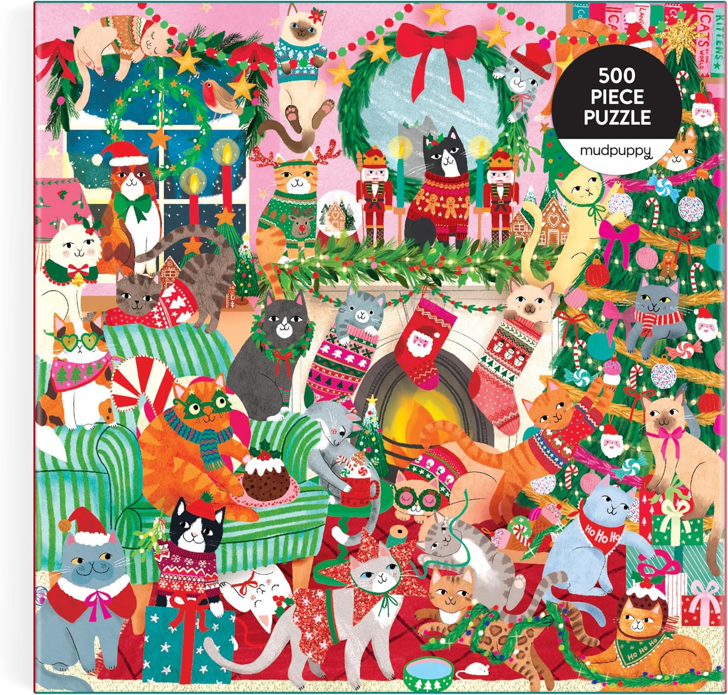 The Merry Catmas 500 Piece Puzzle features a colorful holiday illustration of a cat filled Christmas celebration. This puzzle is just the right level of challenge for the whole family...