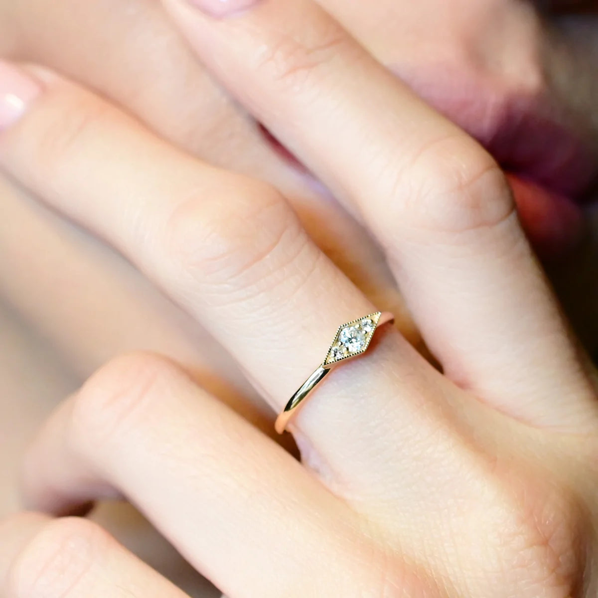 A simple way to dress up even the simplest of ensembles. A large faceted square gemstone sparkles from its position on a beaded 18k vermeil band. Faceted soft square rose...