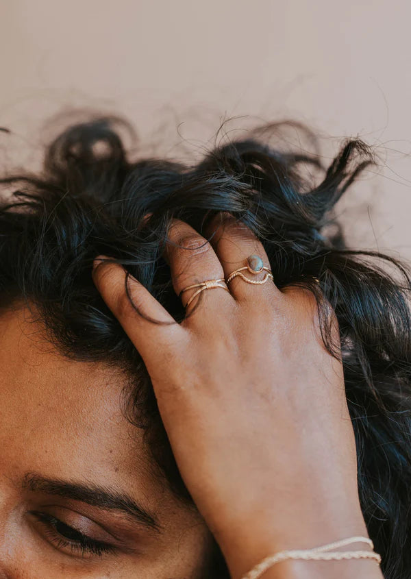 The perfect pair with any gemstone ring, the Dune Ring stacks beautifully and can hold it's own as a solo ring, too. Twisted wire is hand-shaped and made into a...