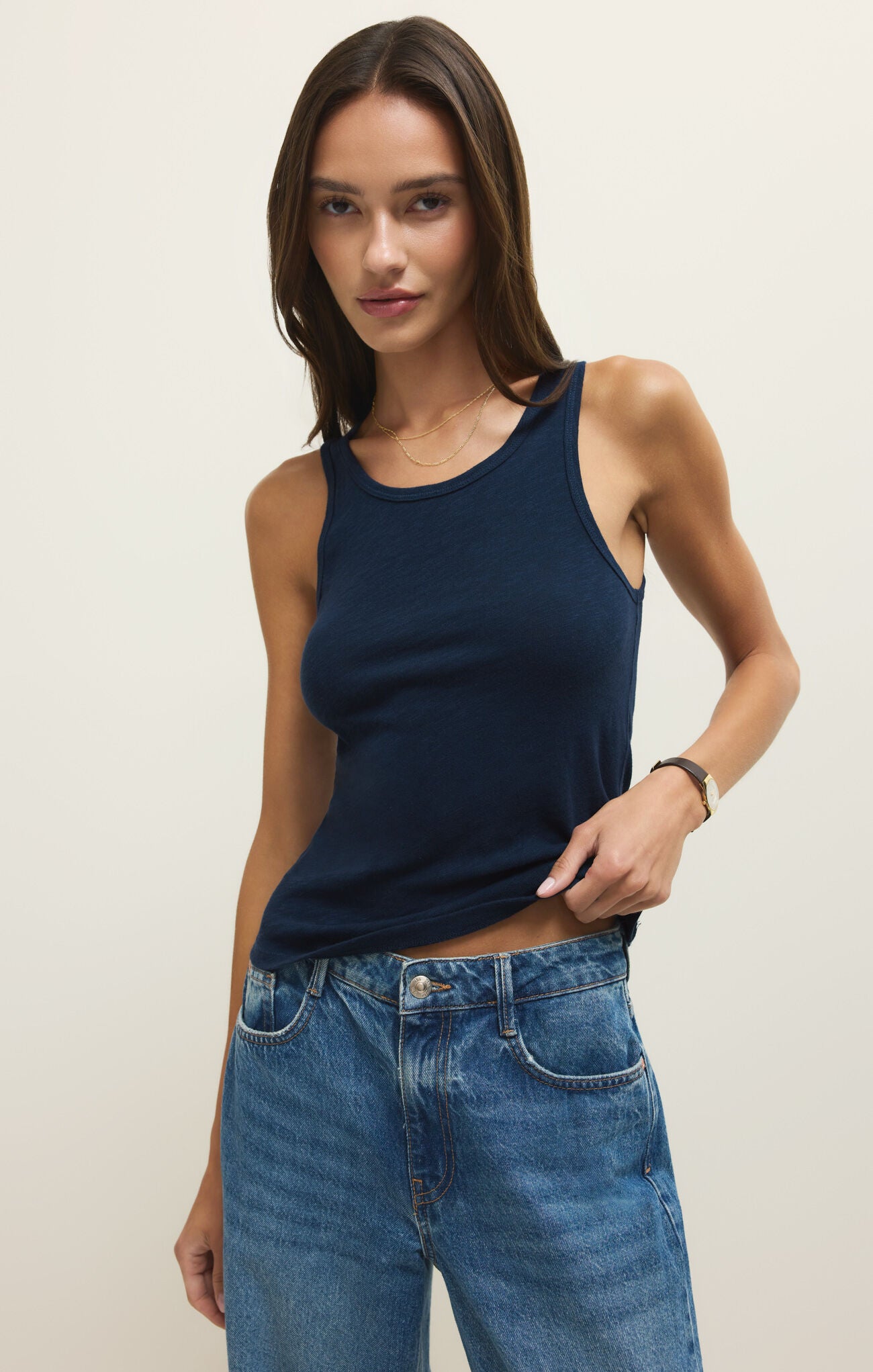 Soft and breathable with a naturally lived-in feel, this scoop tank is made from premium brushed slub jersey for all-day comfort. The subtle texture adds depth to your outfit, whether...