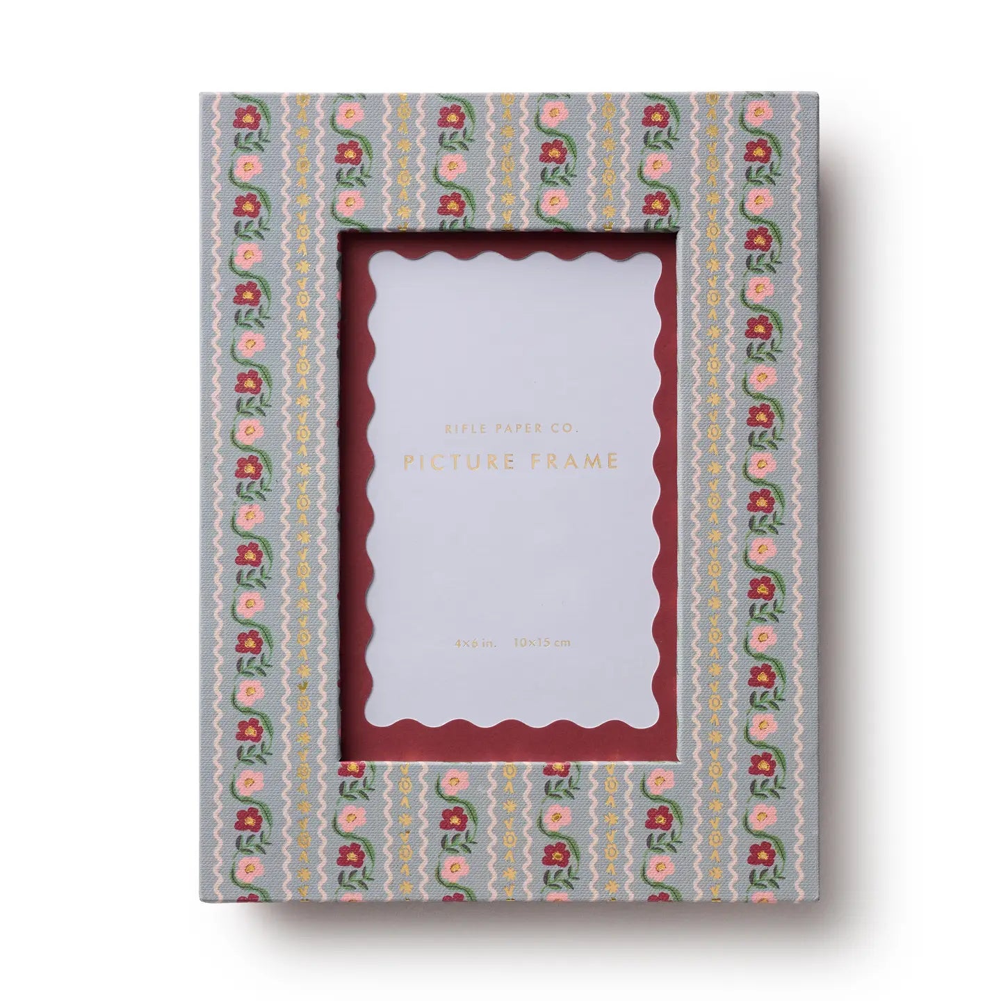 Sized for a 4x6 photo, this paper-wrapped frame features an illustrated floral design, a scalloped photo mat, and a kickstand for display. Textured paper-wrapped hardboard with matte lamination Printed in...