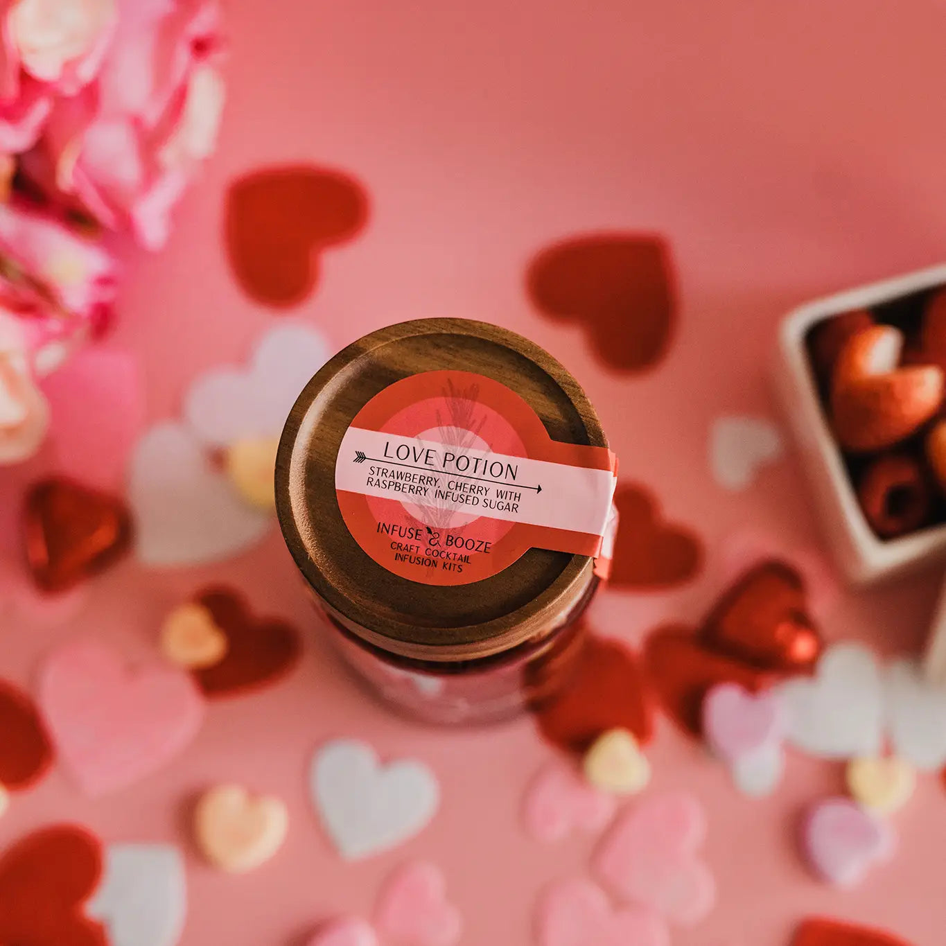 This love potion is made with cherries and strawberries and raspberry infused sugar. Whether you're looking to add some spark to your relationship or simply enjoy a delicious drink, a cocktail made with this is sure to hit the spot. So make a batch for you and your loved one, sit back, and enjoy the sweet taste of love.